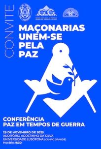 A Grande Loja Legal de Portugal (GLLP/GLRP), em colaboração com o Grande Oriente Lusitano e com a Grande Loja Feminina de Portugal, vai organizar uma conferência dedicada ao tema “Paz em Tempo de Guerra”, reunindo maçons e personalidades externas à … Read More